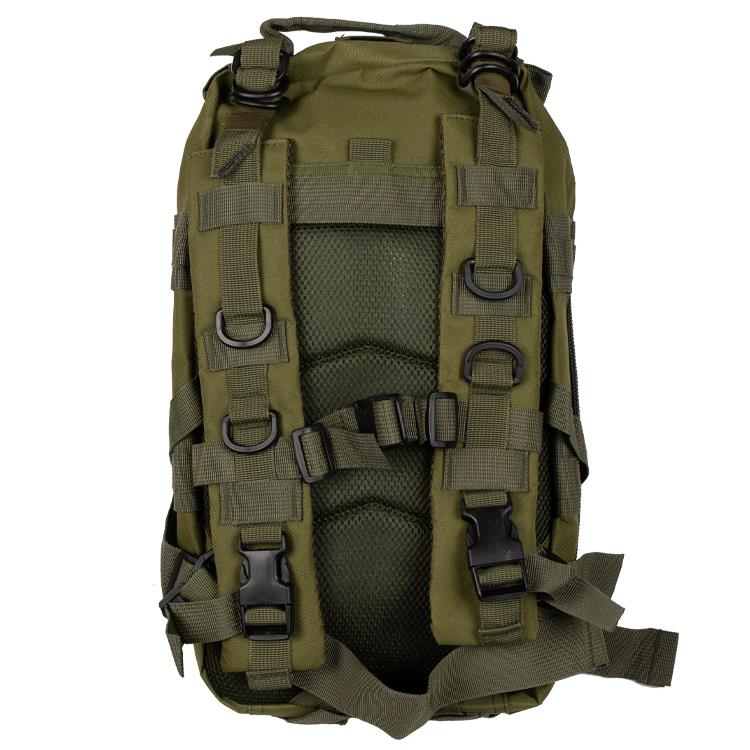 Mochila táctica con capacidad de 20 L. Fabricada en poliéster resistente al desgarro con un revestimiento adicional de PVC en el interior para protección contra la humedad. Su eficacia se demuestra tanto en el uso táctico y de supervivencia como en la vida cotidiana.