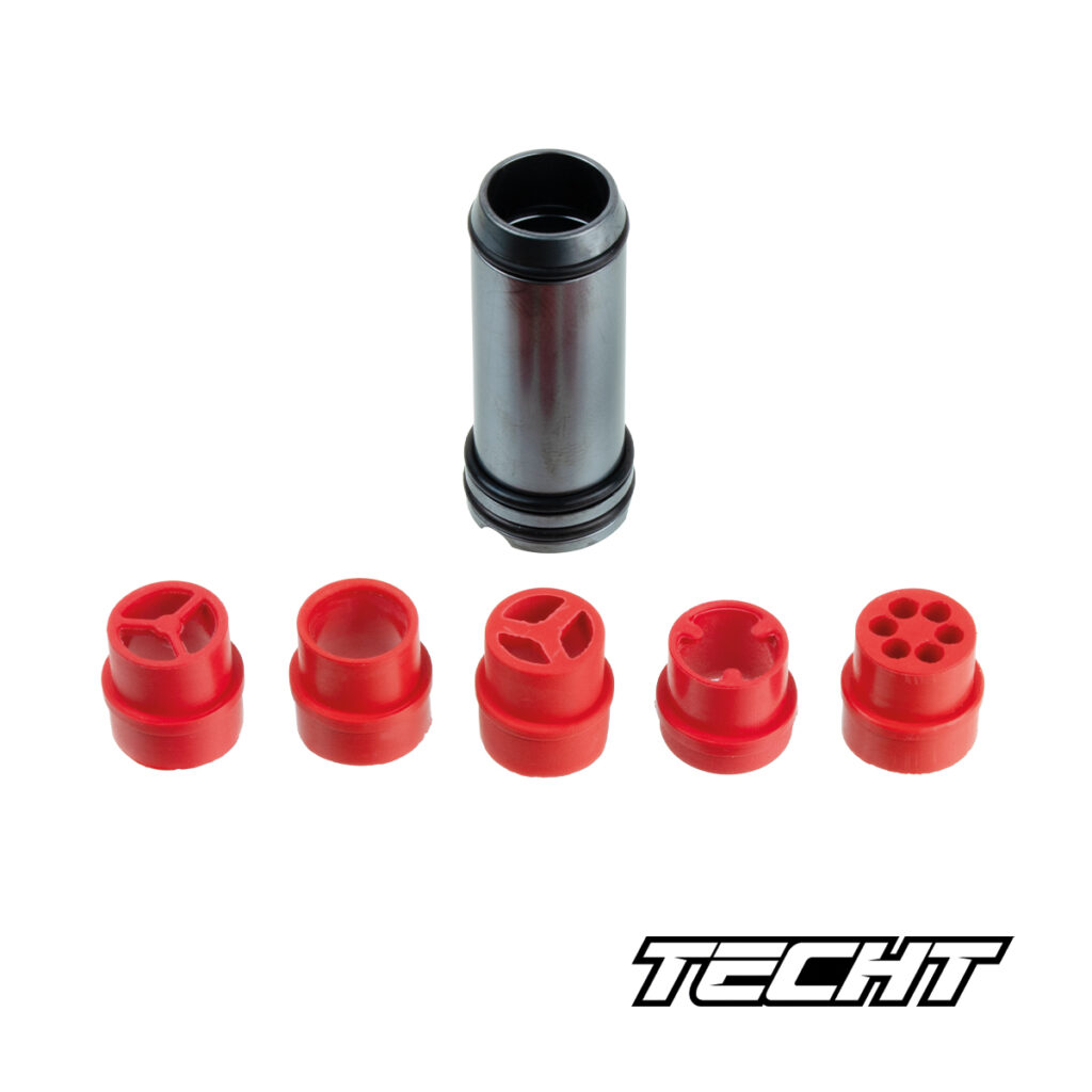 TECHT ha presentado un nuevo tornillo de ajuste con un recubrimiento especial. El nuevo modelo de la serie Kush Bolt es compatible con todos los tornillos Gamma Core de PLANET ECLIPSE. Es compatible con los modelos de marcadoras PLANET ECLIPSE EMEK, Gtek, Gmek, ETHA2, Gtek 160r, 170r, M170, EMF100, CS2 y CS2 Pro. Incluye cinco puntas blandas diferentes. Esta mejora optimizará aún más el rendimiento de tu marcadora PLANET ECLIPSE.