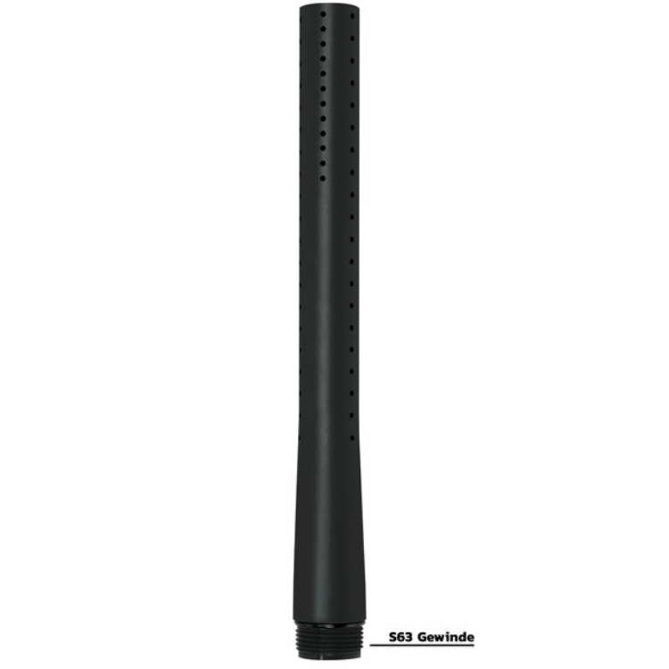 Los insertos PWR utilizados difieren de las fundas XL convencionales de otros fabricantes. En los sistemas de cañón sencillos con fundas, la parte extendida de la rosca es la primera en engranar con la recámara (recámara del marcador). Solo entonces se engrana la funda, lo que significa que la bola de pintura cae en ella al dispararse y puede dañarse. El S63 Pro es diferente. En este caso, la conexión entre la recámara y la funda es un solo componente, eliminando el escalón. Por lo tanto, incluso en este punto crítico, no hay posibilidad de que la bola de pintura se corte. El puerto de doble hélice desplazado proporciona giro a la bola de pintura, lo que resulta en una trayectoria de vuelo estable y, por consiguiente, mayor precisión.